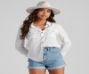 This button-down top is all about cute and classic vibes! It features long sleeves with button cuffs, a collared neckline, and front flap pockets. Composed of breathable Tencel woven fabric with no stretch. Finish the look in skinny
