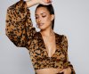 Achieve a chic look for the fall season with this on-trend crop top. It features long dramatic puff sleeves, a deep V-neckline, faux button details, and a cropped fit. The sleek satin fabric has an all-over leopard print for a stylish vibe. Complete the outfit with